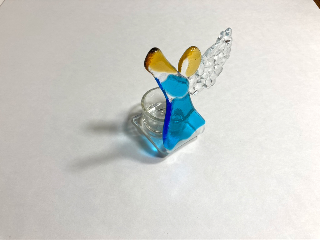 fused glass candle holder Angel